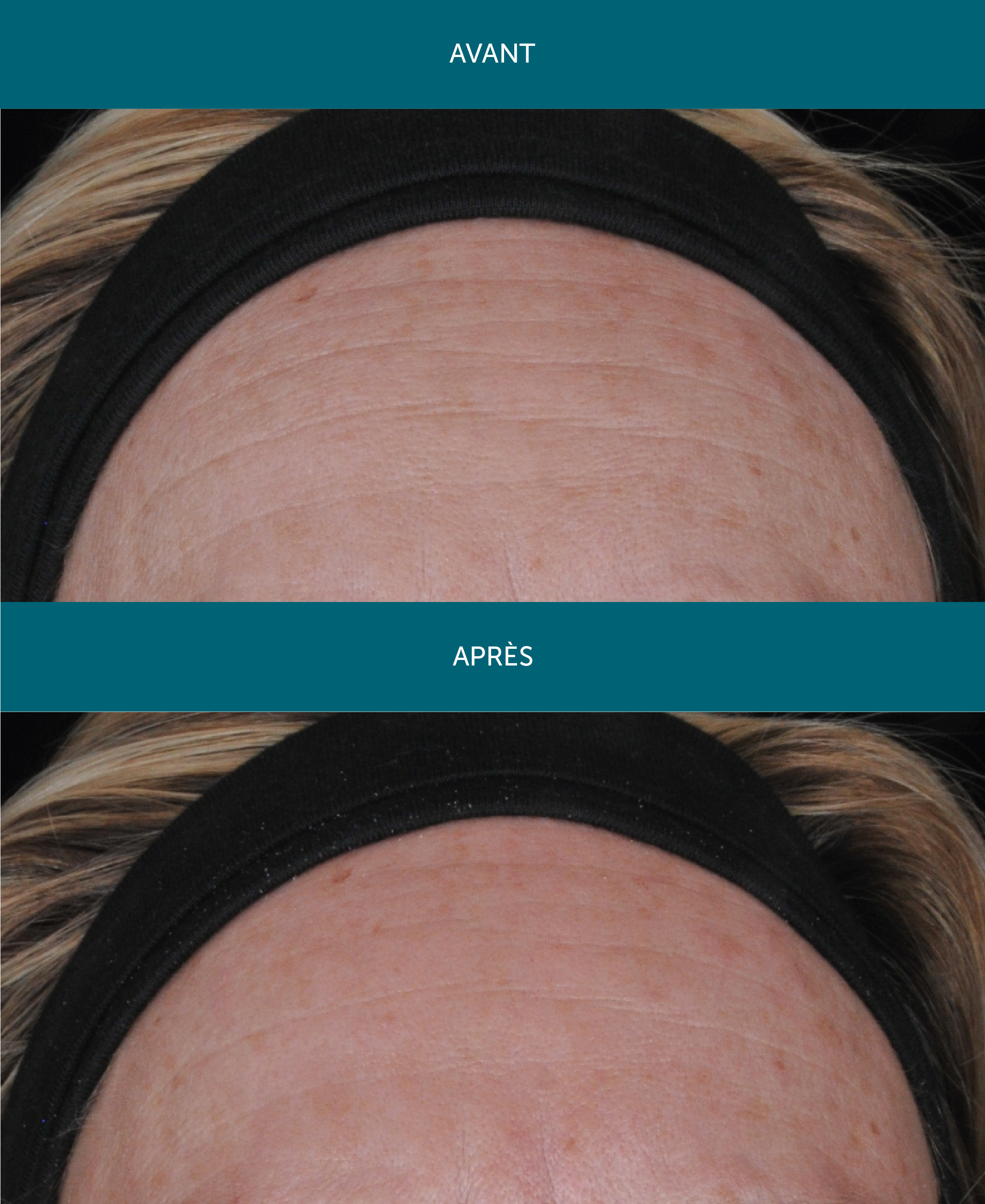 Photo avant/après d’une volontaire ayant reçu le soin professionnel redensifiant Exception Marine